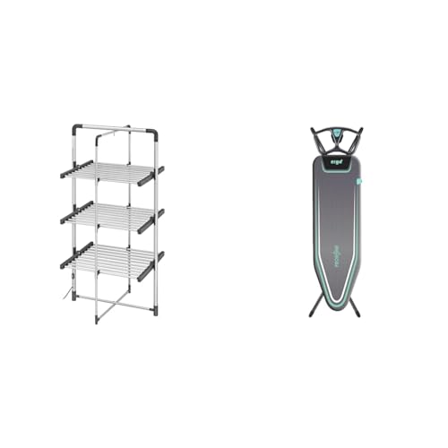 Black+Decker 63099 3-Tier Heated Clothes Airer Aluminium, Cool Grey, 140cm x 73cm x 68cm & Minky Ergo Mint Prozone Ironing Board, Black, 122 x 38cm [Amazon Exclusive]