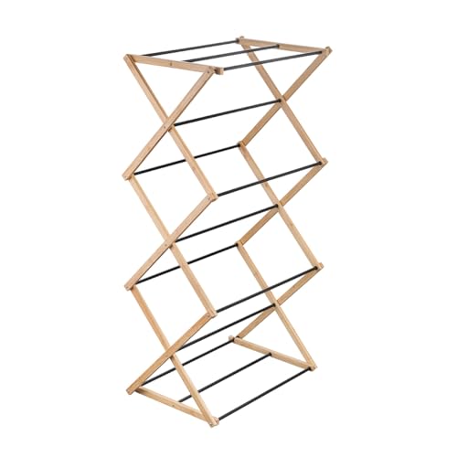 Amig - Foldable Clothes Airer with Wings Mod. Aeria NaturDry - Epoxy-Coated Steel and Bamboo - Clothes Dryer - Easy to Set Up and Fold - 13 m Drying Space - Size 137x62x92 cm - Colour Black/Bamboo