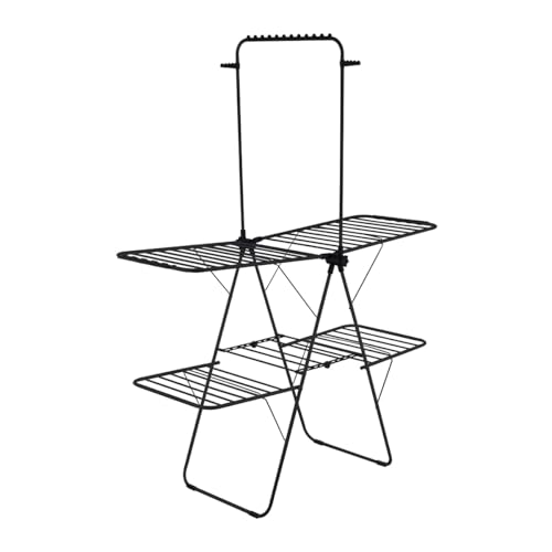 SYKIARIOL Clothes Airer, Winged Clothes Drying Rack, Foldable Drying Rack Laundry Indoor, Space Saving Outdoor Clothes Dryer, Airers Clothes Indoor Foldable for Towels (Black, 175 * 56 * 100cm)