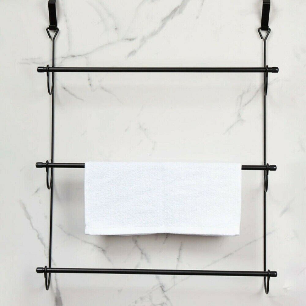Towel Rail Black Over Door 3 Tier Towel Hanging Rail Clothes Rack Holder Airer