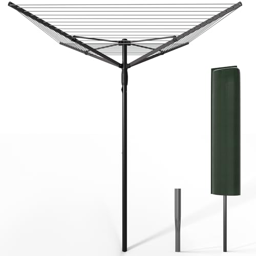 VOUNOT® Rotary Washing Line 50m Heavy Duty Adjustable Height Levels Rotating Clothes Dryer 4 Arm Outdoor Clothes Airer with Protective Cover and Ground Spike, Black