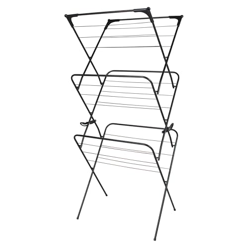Straame 3 Tier Clothes Airer Drying Indoor and Outdoor Laundry Rack with Non-Slip Feet and Corner Spaces for Hangers, Flat Foldable Space Saving, 63 x 46 138 (Black)