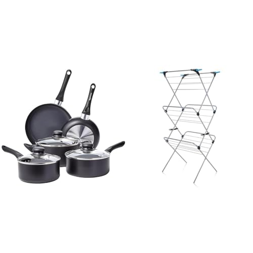 Amazon Basics 8-Piece Non-Stick Cookware Set, Black & Minky 3 Tier Plus Clothes Airer