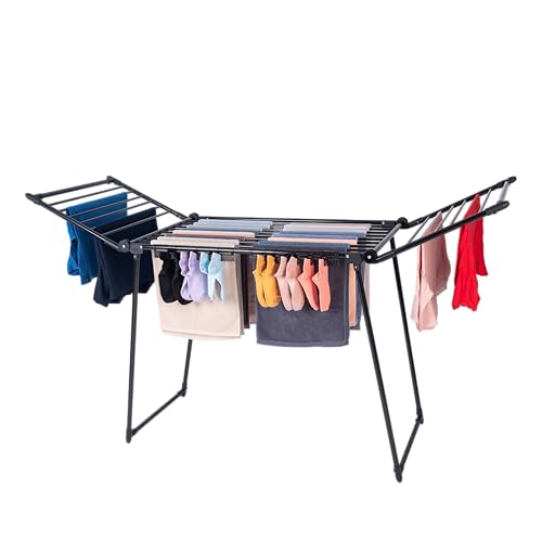 Vivo Technologies Clothes Drying Rack 4-Tier Folding Clothes Airer,Metal Laundry Drying Rack Collapsible Clothes Rack, Indoor-Outdoor with Foldable Wings Dryer Hanger Rack Black