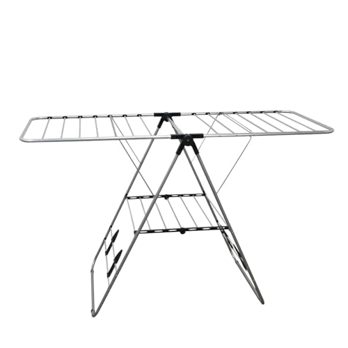 Amig - Foldable Clothes Airer with Wings Mod. Aeria UrbanDry - Aluminium and Steel - Clothes Dryer - Easy to Set Up and Fold - 15 m Drying Space - Size 145x60x95 cm - Colour Silver/Black