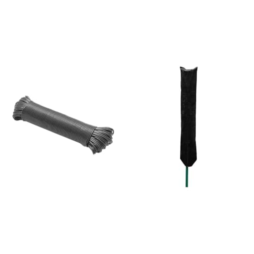 Addis Replacement Outdoor Clothes Washing Plastic PVC Line, 60 metres, Grey & Rotary Airer Protective Cover, Waterproof in Black