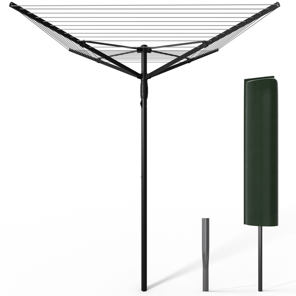 4 Arm 50M Rotary Washing Line Heavy Duty Clothes Airer Dryer for Outdoor & Garden, Folding Large Rotary Clothes Line with Metal Ground Spike and Cover, Black