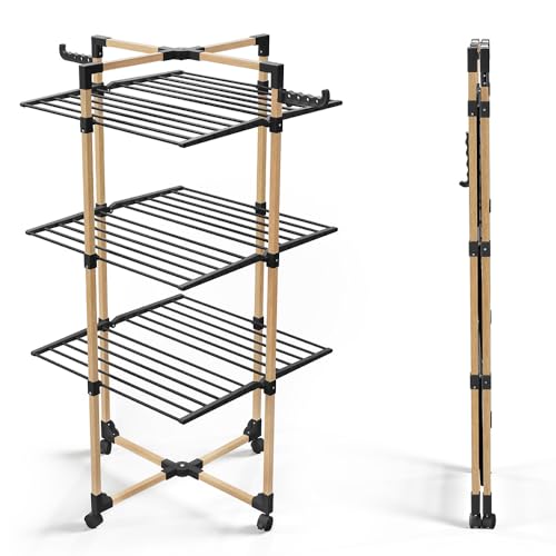 1ABOVE 3 Tier Clothes Airer, Indoor and Outdoor Clothes Drying Rack with 15 m Drying Space, Non-Slip Feet and Corner Spaces for Hanger-Black