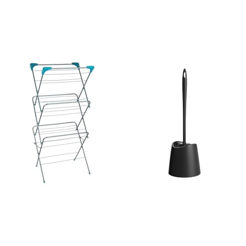 Beldray LA050397EU 3-Tier Clothes Airer – Collapsible Indoor Drying Rack, Foldable Clothes Horse & TATAY Toilet Brush WC-Standard, Polypropylene, Black, One Size