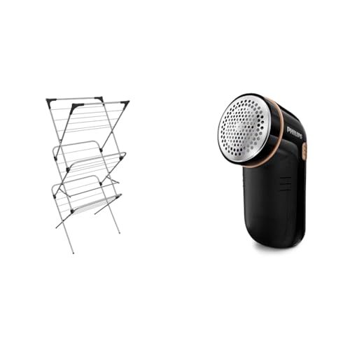 Vileda Sprint 3-Tier Clothes Airer, Indoor Clothes Drying Rack with 20 m Washing Line, Silver & PHILIPS Fabric Shaver, Black, Pack of 1