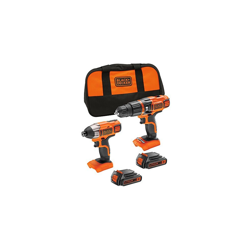 BLACK+DECKER 18 V Cordless Hammer Drill Power Tool with Impact Drill Driver and Storage Tool Bag, 2 x 1.5 Ah Lithium-Ion Batteries, BDCHIM18B-GB