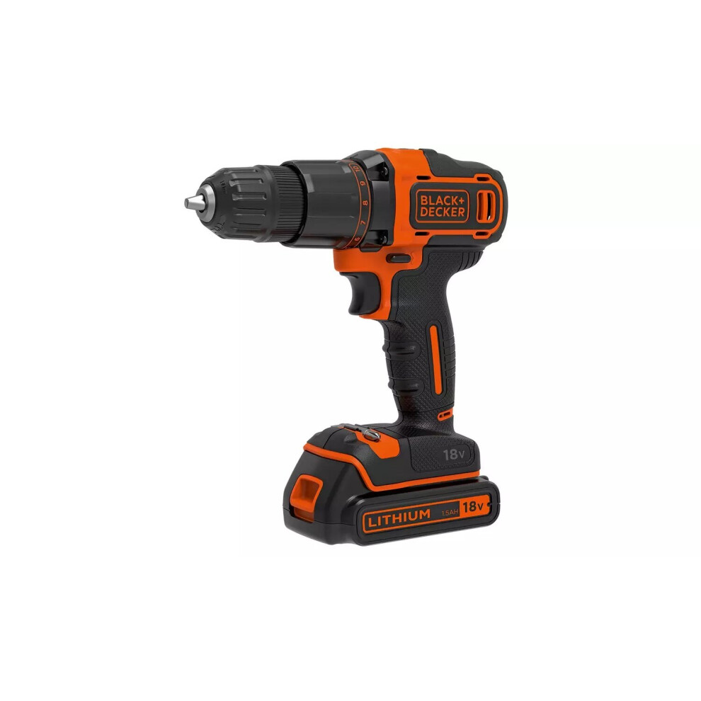 Black + Decker bdchd18kst-qw Hammer Drill Driver, 18 V Lithium Battery, 1.5 Ah, Smart Tech Technology, Orange/Black, Orange, BDCHD18KST-QW, 18 voltsV