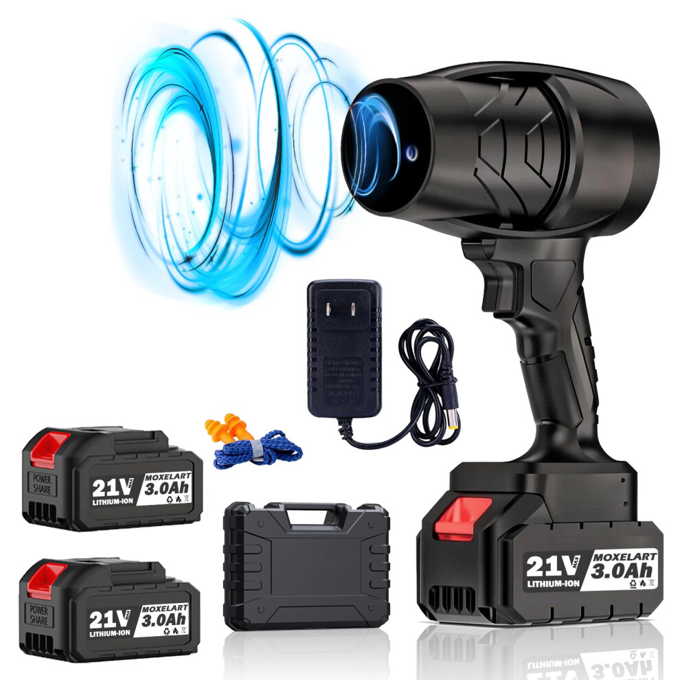 Qvhgnxcm Saker Portable Dust Cleaner Cordless Leaf Blower Handheld Jet Dry Blower Fan Cleaner 180000 RPM with 2 Batteries for Patio Cleaning, Blowing Leaves, Drying, Camping (1, Black)