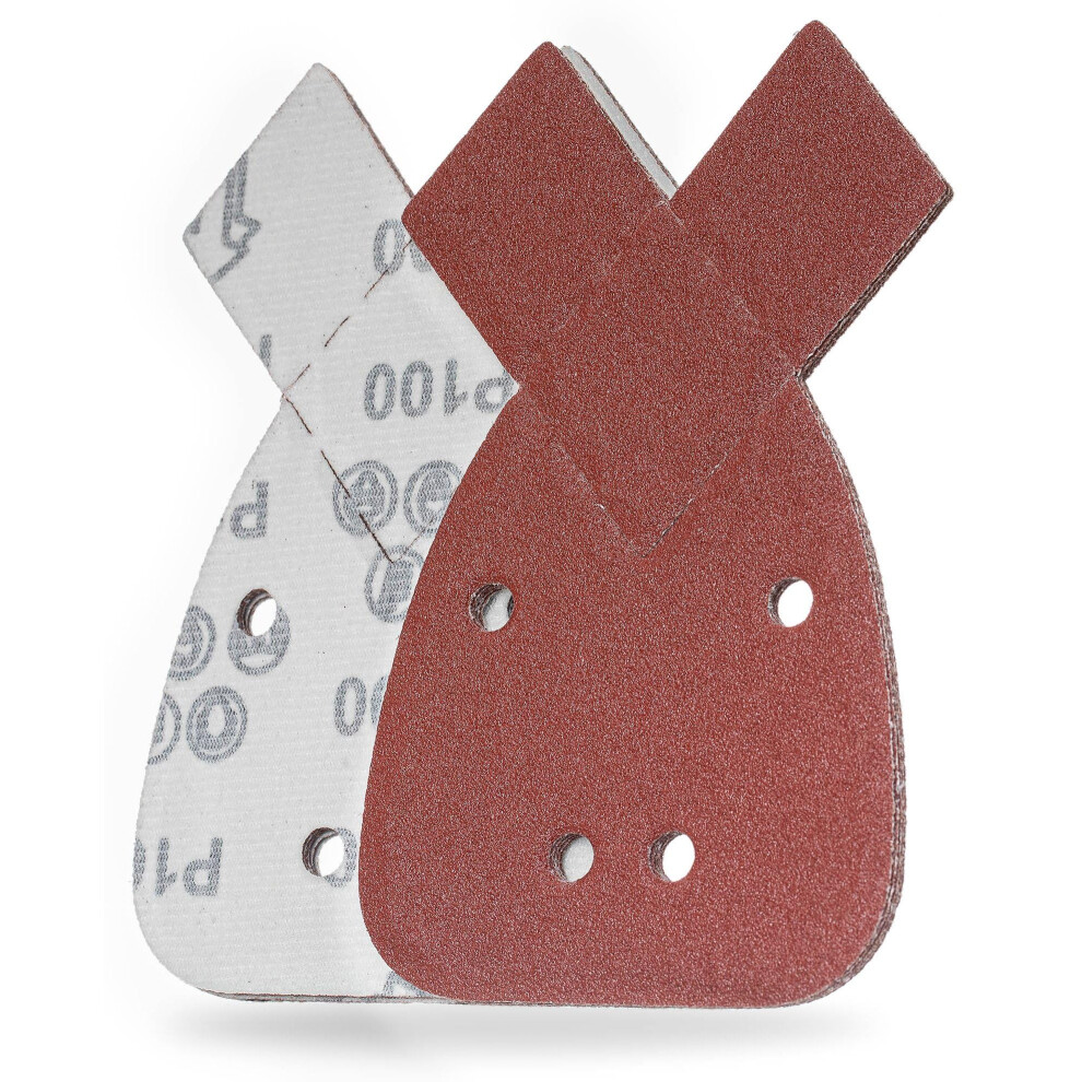 TOOLSTAR Mouse Sander Pads, 140 * 140 * 98mm 6-Hole 100 Grits Mouse Detail Sander Triangle Sanding Papers Sandpaper Sanding Sheets Black and Decker Palm Sander All Grit (10pcs)