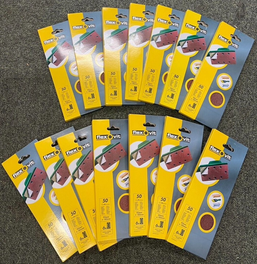 FLEXOVIT HOOK AND LOOP SANDPAPER SHEETS 50G FOR BLACK & DECKER SANDERS 9 X 18CM