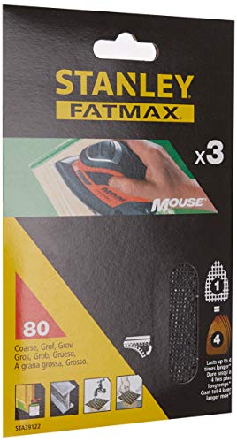 Stanley Fatmax STA39122-XJ Mesh Sanding Sheets for Black+Decker Mouse, 80G, Pack of 3