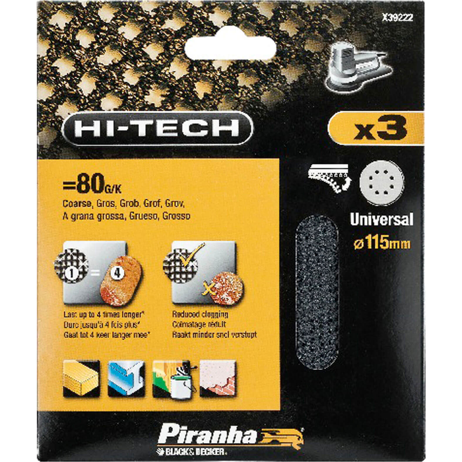 Black and Decker Piranha Hi Tech Quick Fit Mesh ROS Sanding Sheets 115mm 115mm 80g Pack of 3