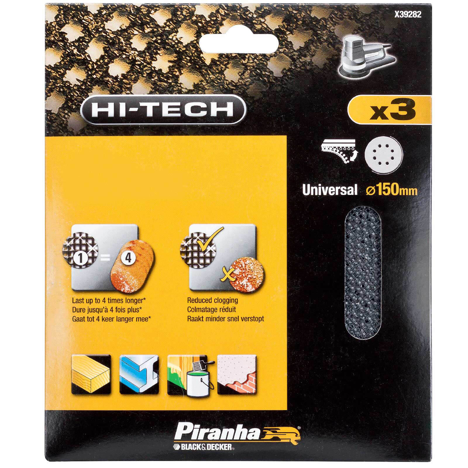 Black and Decker Piranha Hi Tech Quick Fit Mesh ROS Sanding Sheets 150mm 150mm Assorted Pack of 3