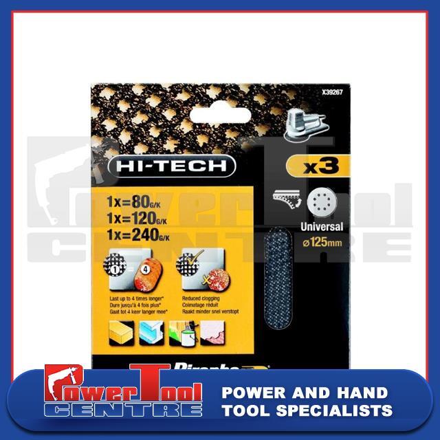 Black and Decker Piranha Hi Tech Quick Fit Mesh ROS Sanding Sheets 115mm 115mm Assorted Pack of 3