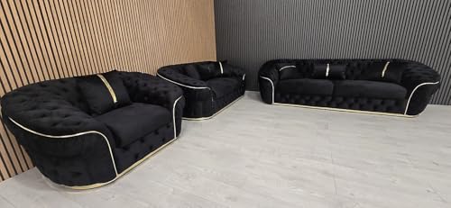 Stella Furniture - LION 3 Piece Sofa Sets for Living Room with Four Cushions - Convertible 1, 2 and 3 Seater Sofa Sets, Couches with Storage - Free Assembly & Delivery (3+2+1 Seater, Black/Gold)