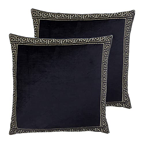 Paoletti Apollo Twin Pack Polyester Filled Cushions, Black/Gold, 50 x 50cm