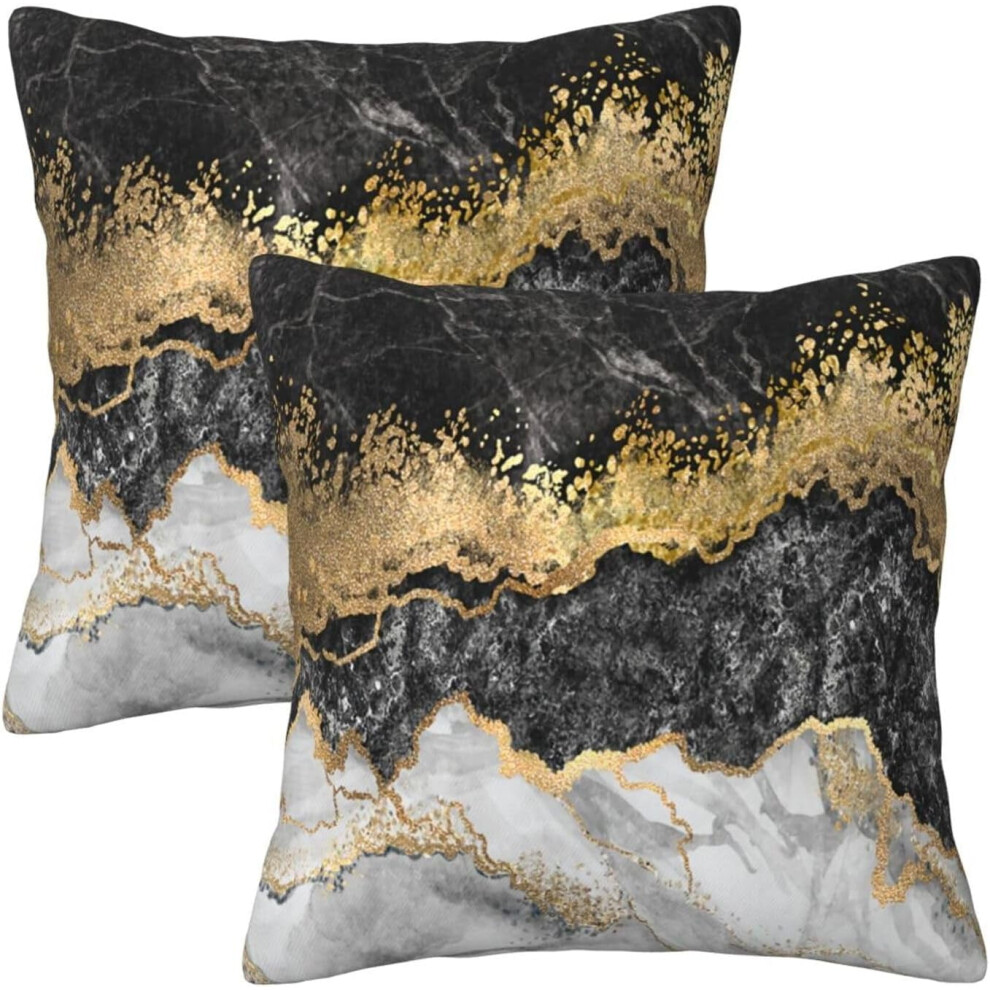 Black & Gold Abstract Marble Pillow Covers 18x18", Set of 2, Compatible with Standard Square Cushions