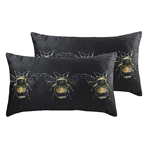 Evans Lichfield Gold Bee Cushions (Twin Pack) - Black - Size 30 cm x 50 cm