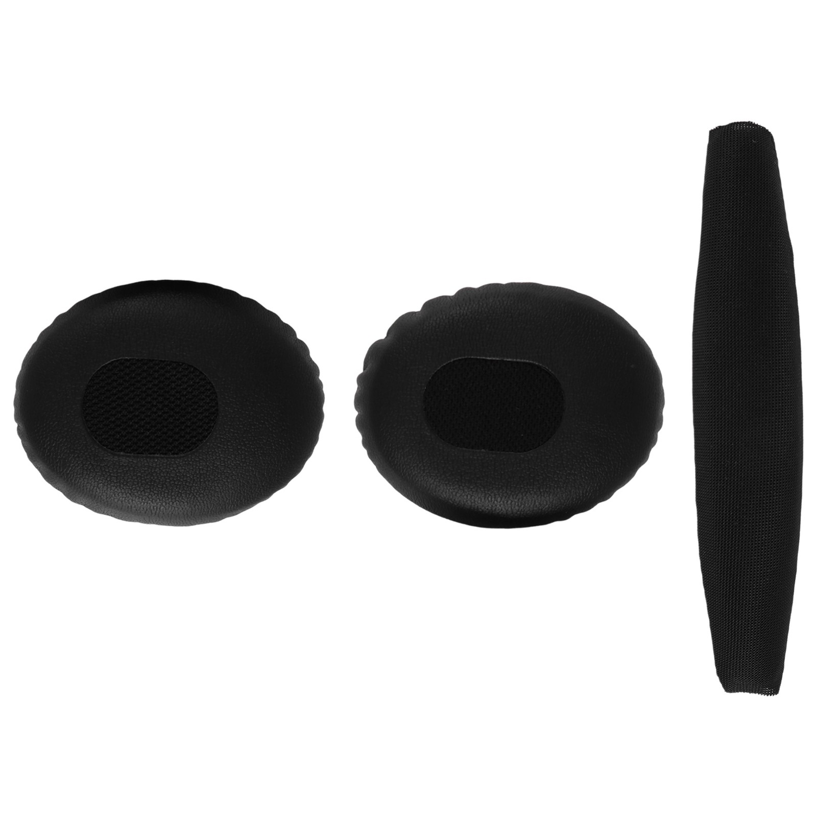 A pair of black ear cushions with head pad for QC3 Quiet Comfort 36050