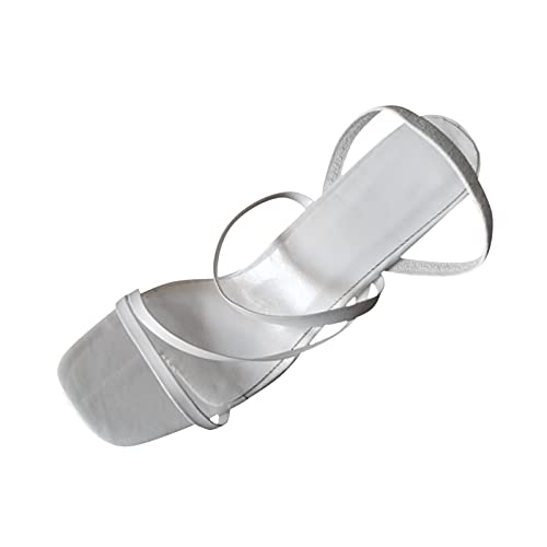 Uwdiohq Spring And Summer New Ladies Comfort Slippers European American Shoes One Shaped Roman Square Head Heel Platform Slides Sandals For Women (White, 7) Black Silver Block Gold Strappy