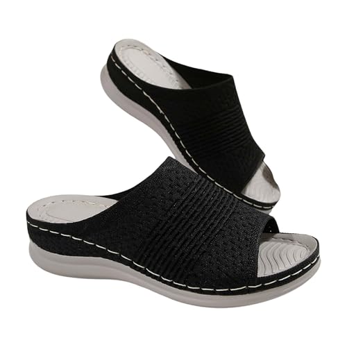 IUYTYSER Women Holiday Wedge Slides Women'S Slippers Spring Summer And Autumn One Fish Mouth Outer Wear Roman Sandals Light Beach Comfortable Casual Outdoor (Gold, 6.5) Ladies Size 5 Black