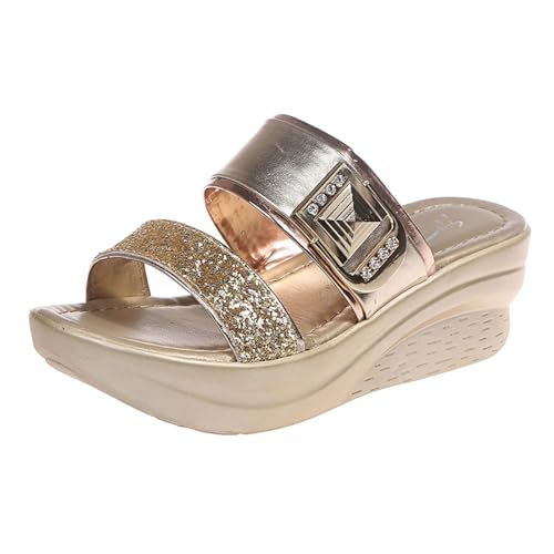 IUYTYSER Women Holiday Wedge Slides Women'S Slippers Spring Summer And Autumn One Fish Mouth Outer Wear Roman Sandals Light Beach Comfortable Casual Outdoor (Gold, 6) Ladies Wide Fit For Black