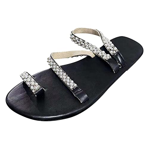 Uwdiohq Women's Thong Sandals Casual Shoes Fashion Outdoor Roman Breathable Leisure Womens And Slides Sparkly Flat Gold For Women Ladies Holiday With Rhinestones Gladiator Summer Black 5.5