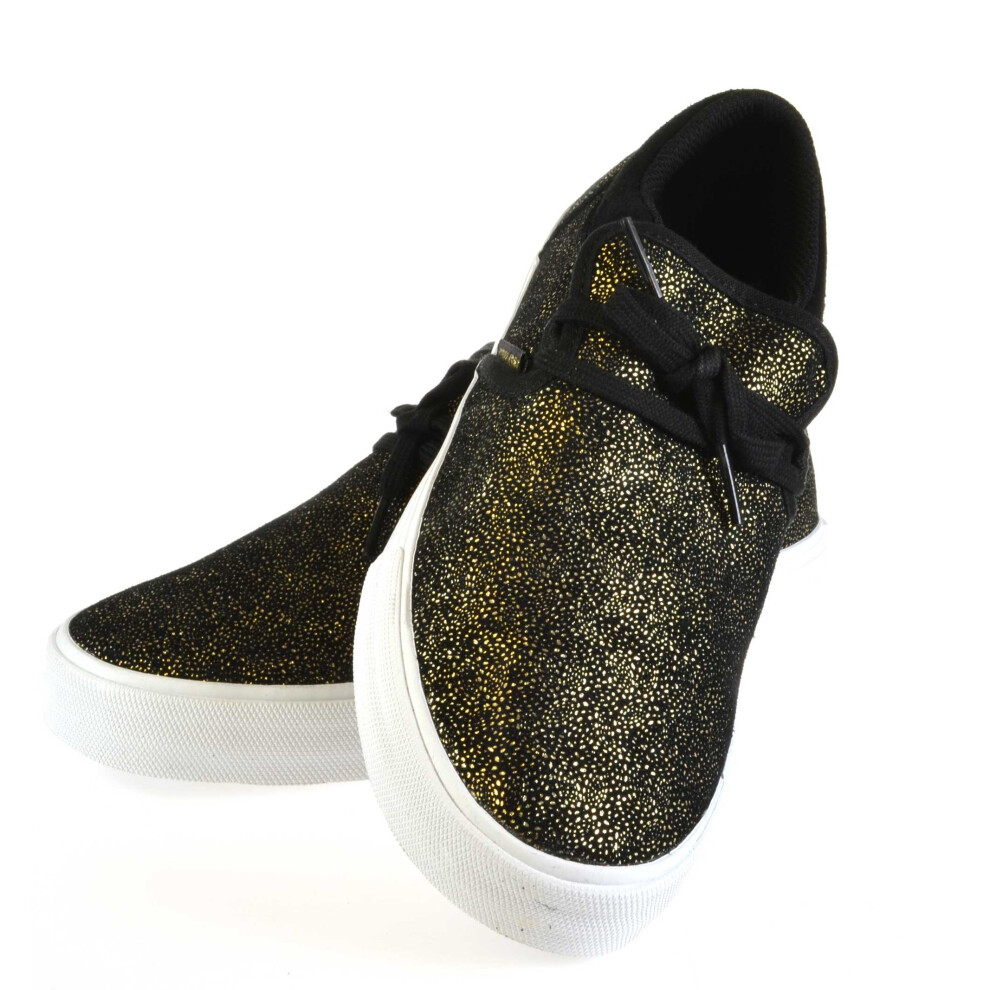(4.5 (Adults')) Supra Womens Cuba Black Gold White Skate Trainers