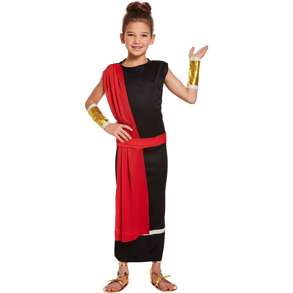 Black and Red Fancy Dress Girls Roman Costume Toga Age 7 -9 Years