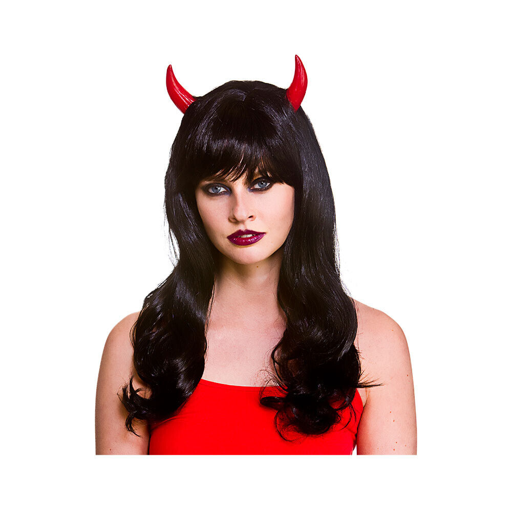 Adult Ladies Devilicious Wig with Horns Black & Red Halloween Fancy Dress