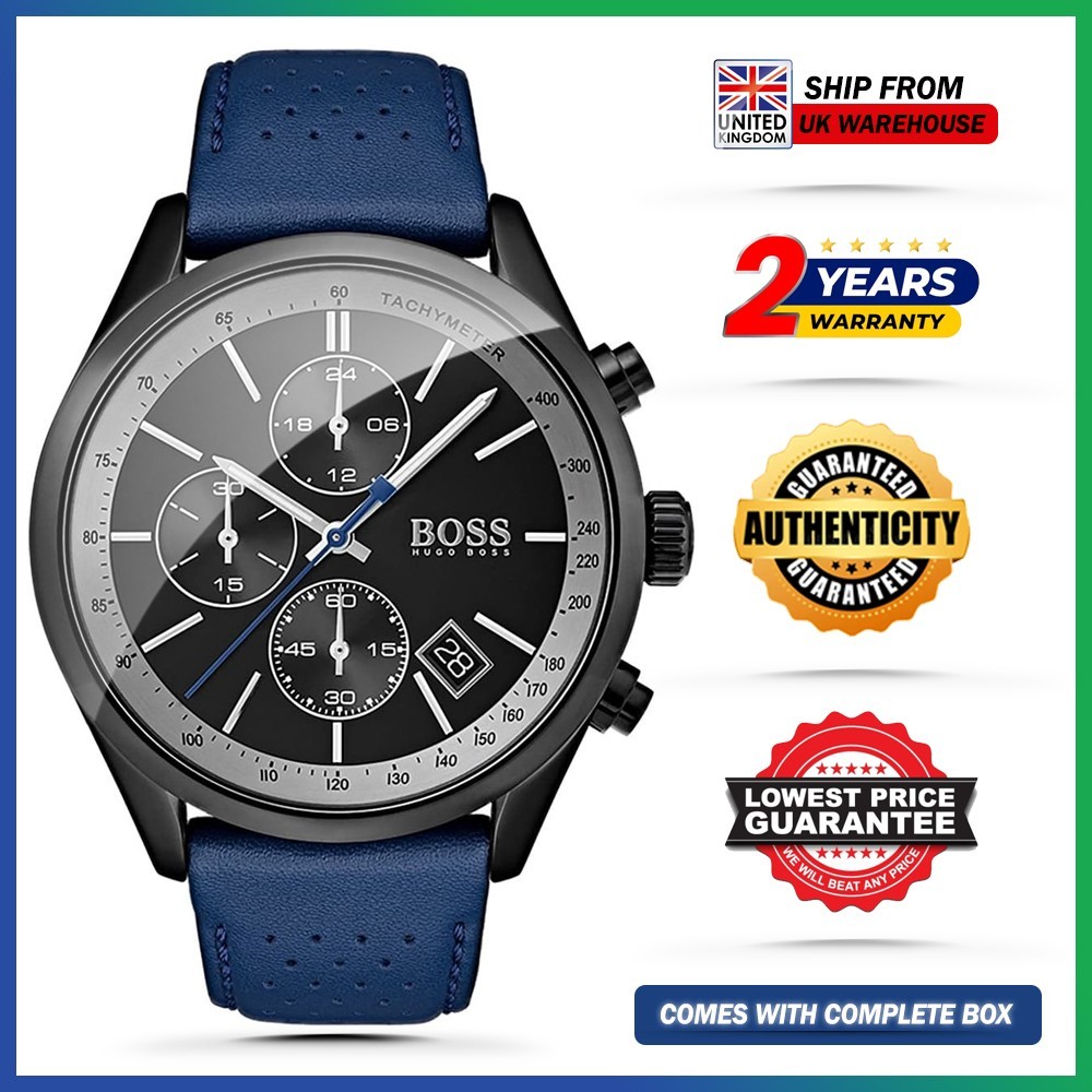 New Genuine HUGO BOSS HB1513563 Grand Prix Men's Watch Blue Strap Black Dial UK