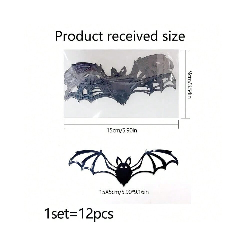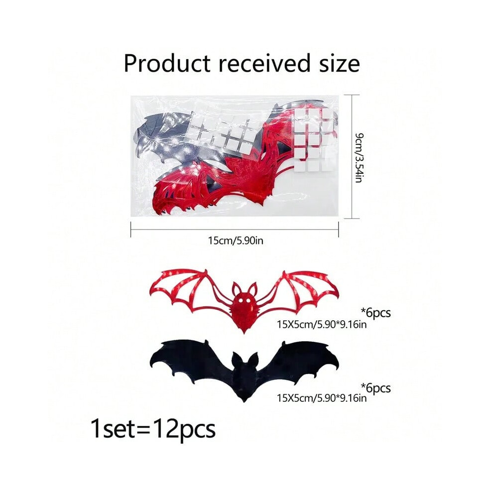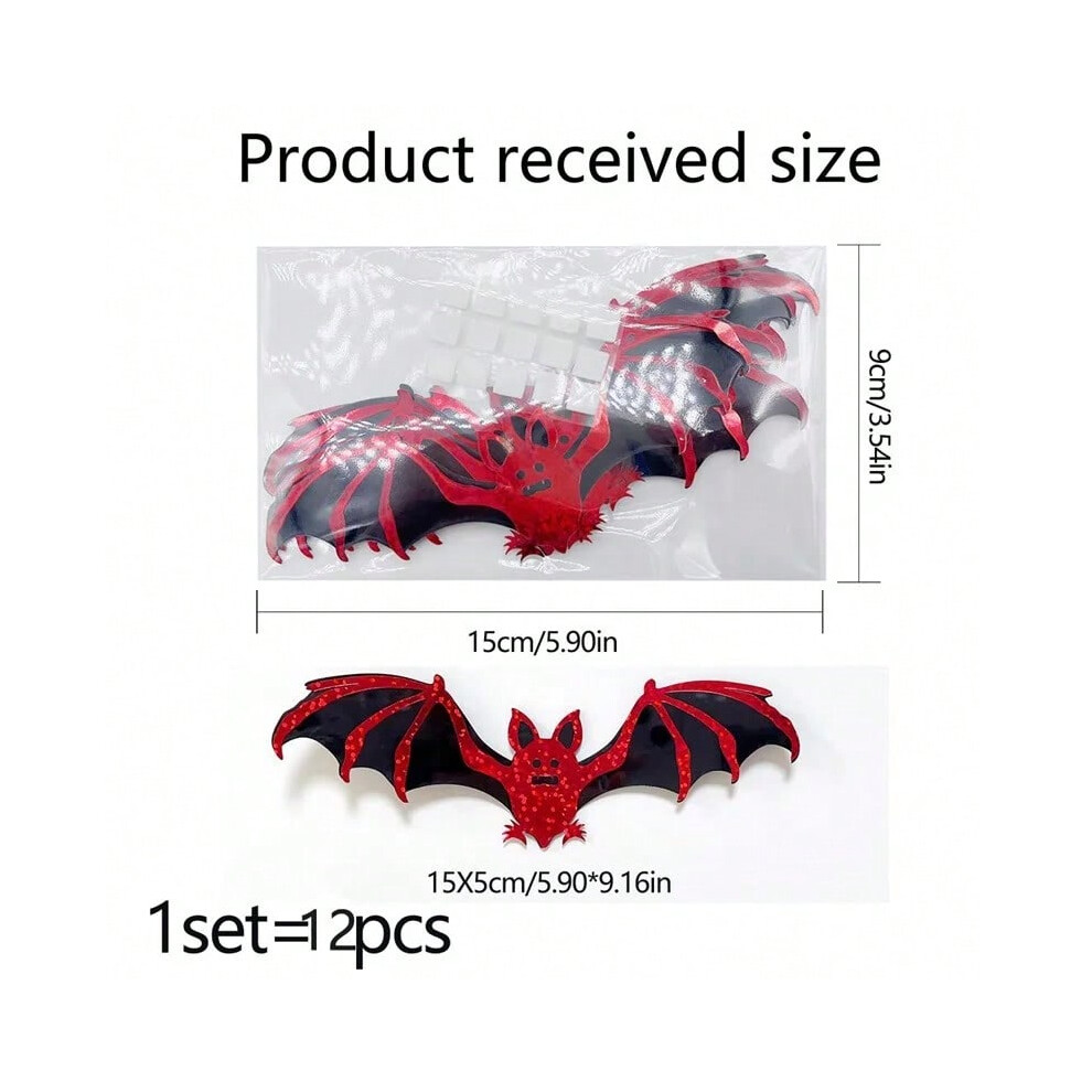 (12pcs Black Bats) Bat Stickers Decoration Halloween Home Wall Background Artificial Wallpaper Decal Ornaments for Indoor Home Party Red Black