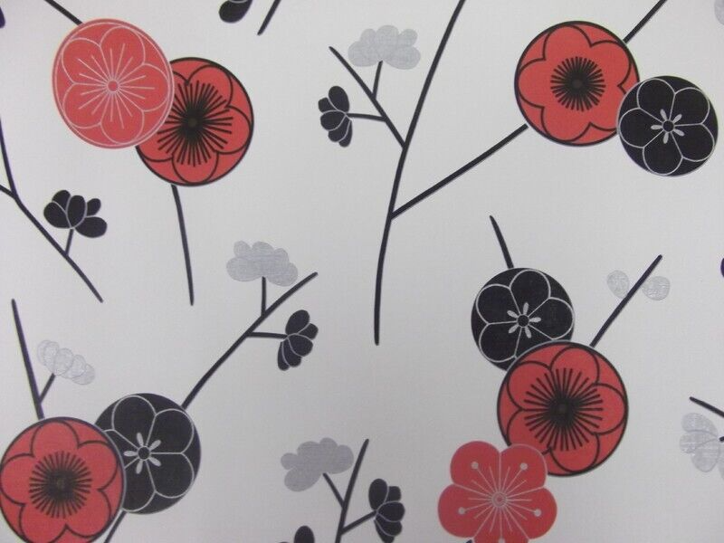 Floral Glitter Wallpaper Red Black Vinyl 1201 10m x 53cm Textured Metallic