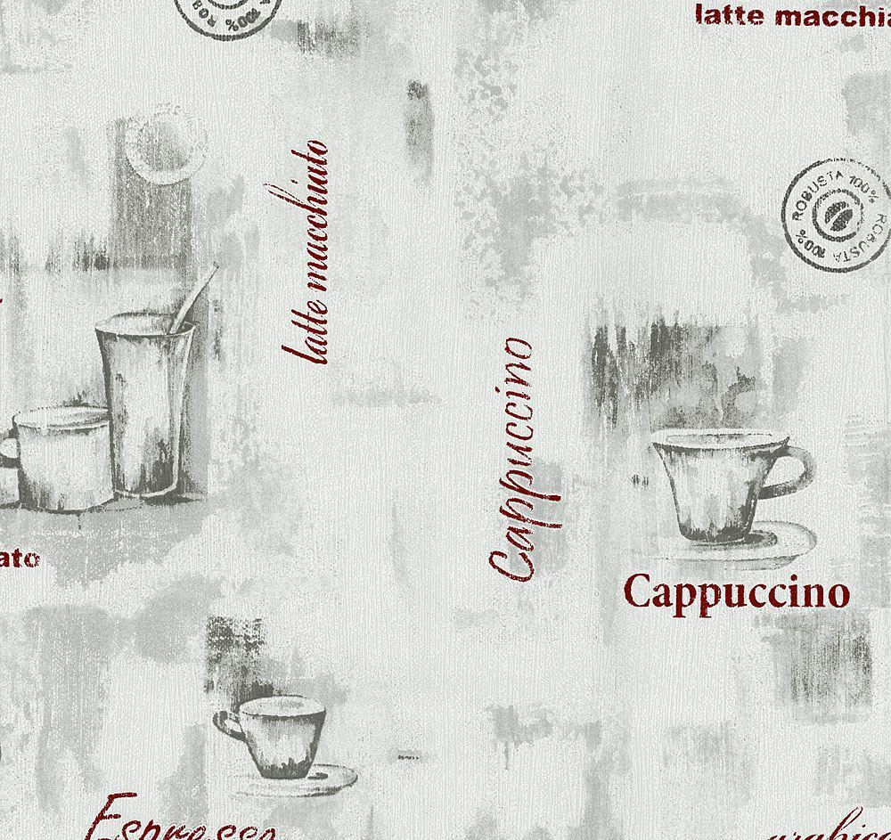 P+S Grey Red Coffee Cup Wallpaper Typography Kitchen Textured Paste Wall Vinyl