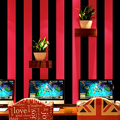 MEAIHOME Modern Simple Horizontal Vertical Striped Bedroom Coffee Restaurant Clothing Store TV Background Non-Pasted Wallpaper Roll Black Red 1.73' L x 32.8' W