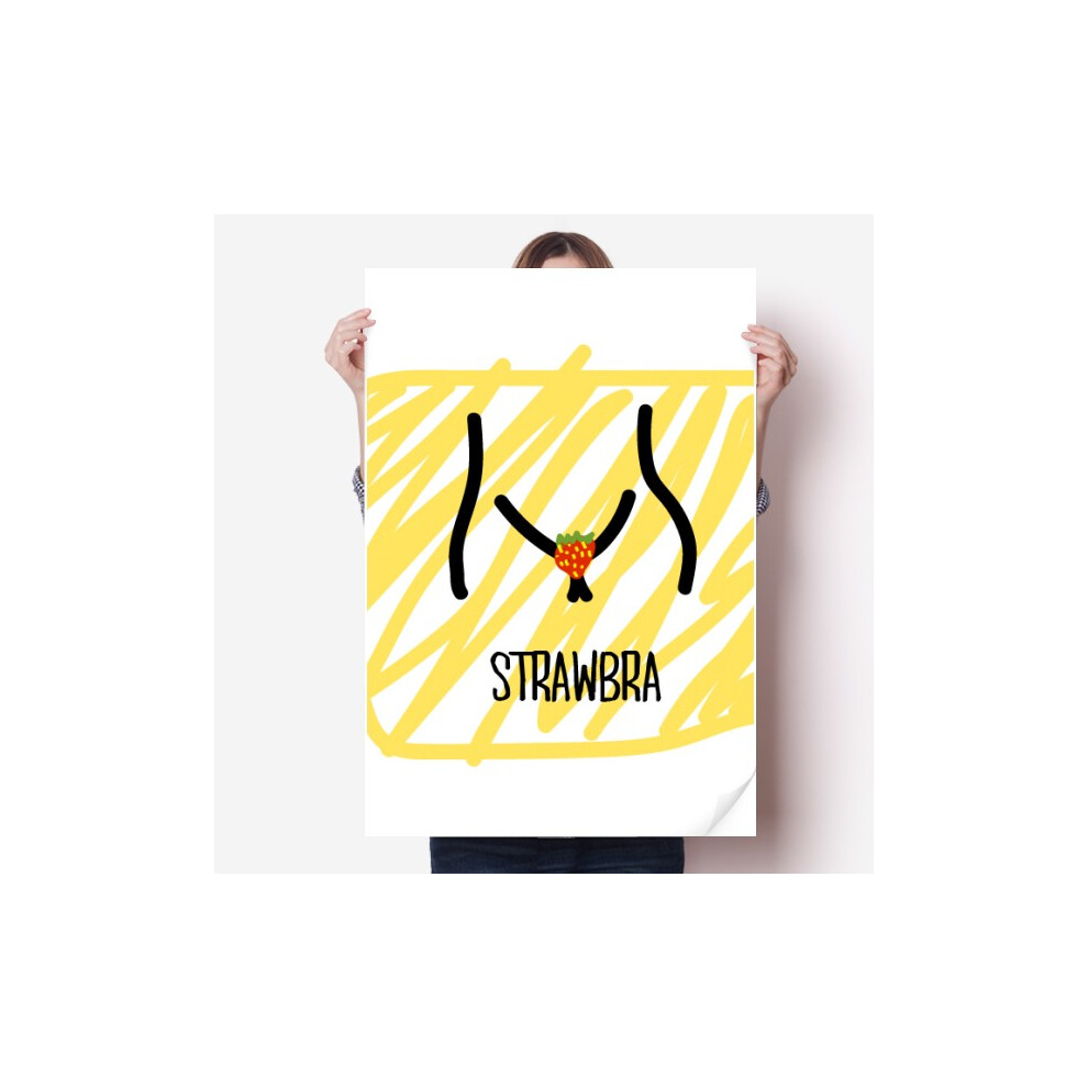 Funny Black Red Strawberry Drawing Sticker Decoration Poster Playbill Wallpaper Window Decal