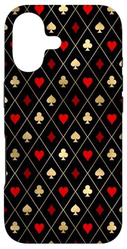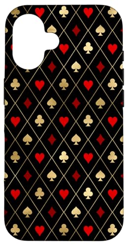 Black Queen Of Hearts Spades Diamonds Red Wallpaper Pattern Case for iPhone 16 Plus