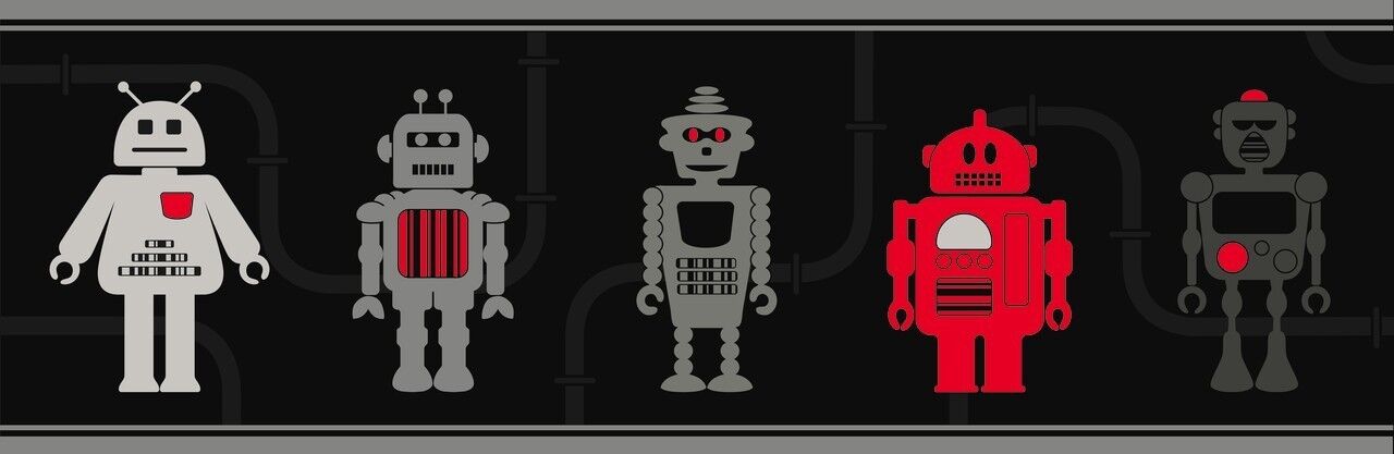 BLACK SILVER RED ROBOT BOYS CHILDRENS KIDS TEENAGE WALLPAPER BORDER DLB07533