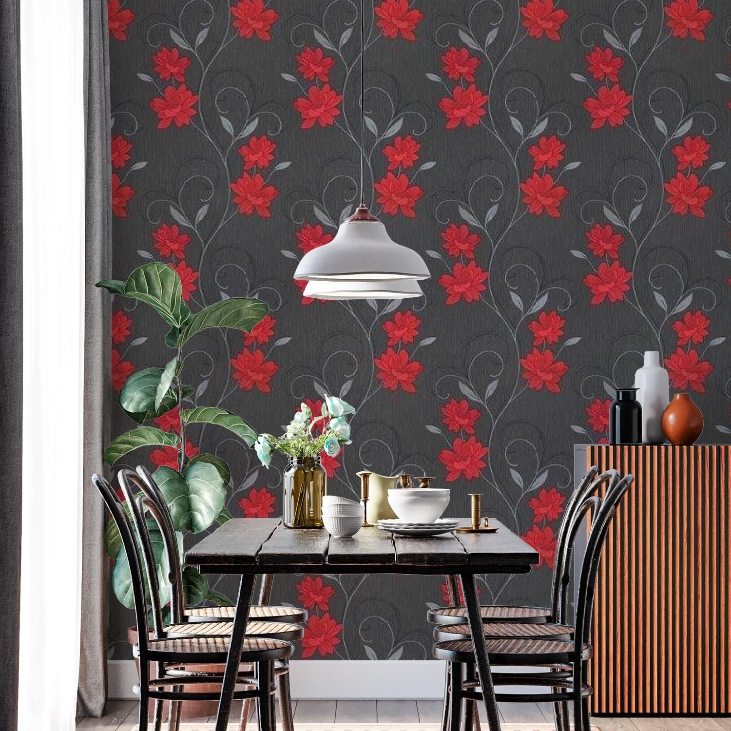 Fine Decor Red Black Aristas Floral Wallpaper Flower Paste The Wall