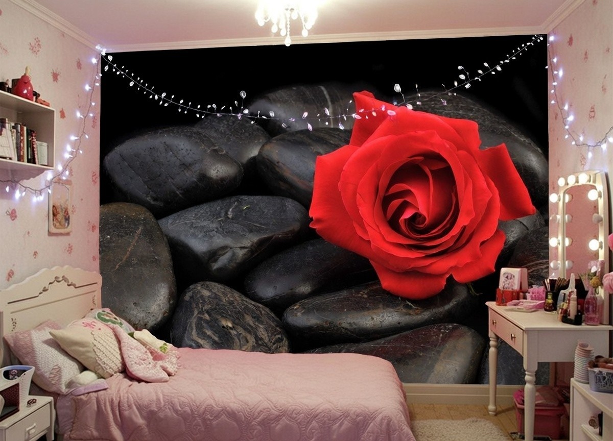 Red Rose Photo Wallpaper floral Wall Mural black stones Bedroom Decor 100x72 in