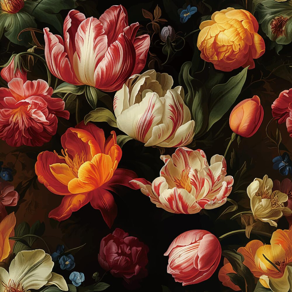 REDAMANCY Antique Tulips Floral Vintage Dark Black Yellow/Pink/Red Flowers Peel and Stick Wallpaper Stick on Contact Paper Vintage Wall Paper Easy Pee
