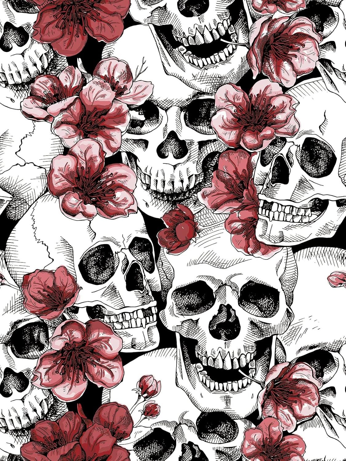 Sugar Skull Floral Peel and Stick Wallpaper Red/Black/White Vinyl 44 x 300 cm
