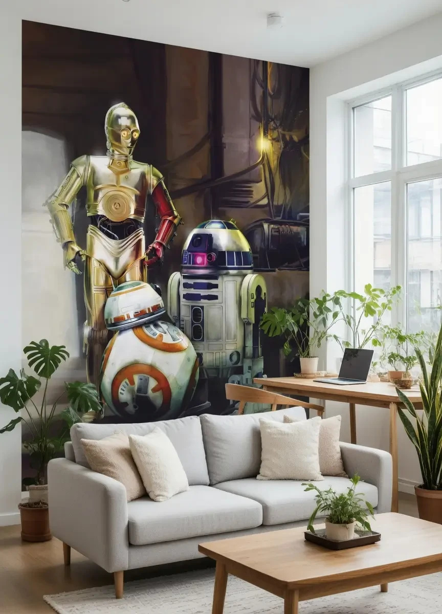Star Wars Droids photo wallpaper medium size bedroom wall black brown and yellow