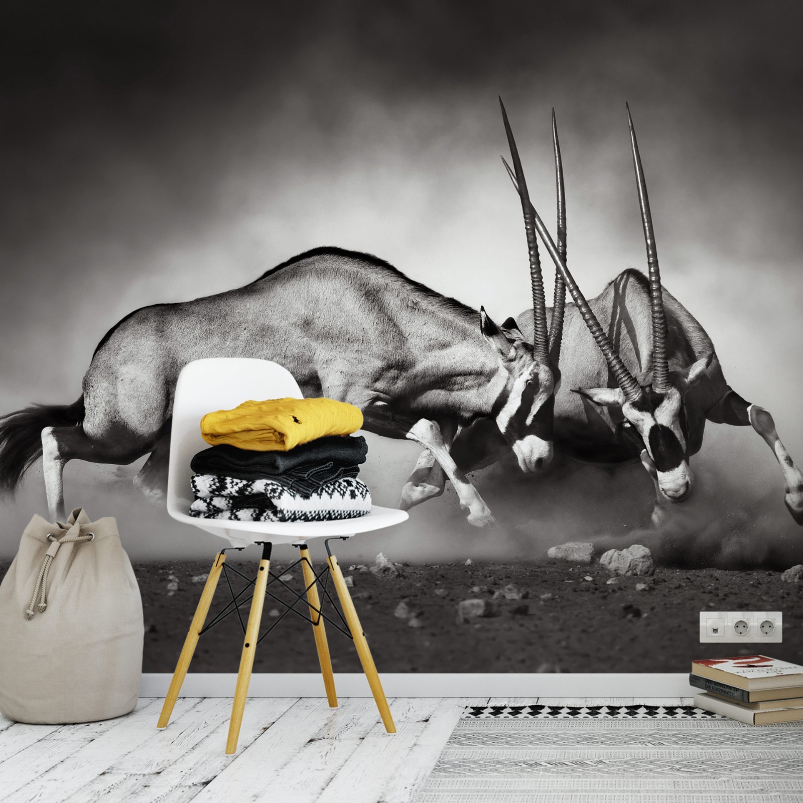 Animal photo wallpaper 260x384 cm red wall mural bedroom black and white decor