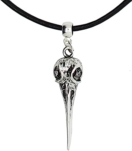 Silver Knight Raven Skull Waxed Cord Unisex Necklace Silver Bird Skull Adjustable Choker Goth Halloween Fancy Dress Bellatrix Lestrange Inspired Necklace, silver and black, cord adjusts 18 to 20''